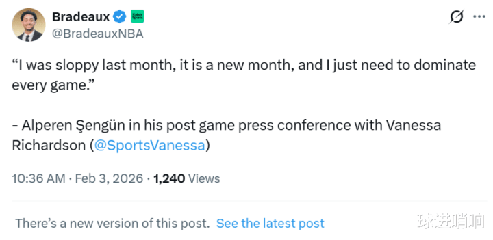 打出傲人表现又获得主帅称赞后,申京本人也十分兴奋,赛后放出豪言:“上个月我有些松懈,现在是新的一个月,我将统治每一场比赛。”